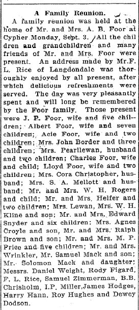 Click Here to Go Back to the Foor Family Genealogy Home Page